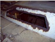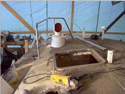 In the left picture above you can see the old standing L-bar for the dingy "holders". The new one will be welded laying down so when dingy is in water the "holders" can be folded down - youll see...