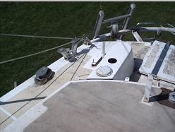 On aft deck all things that could be removed was. Only lazarette hatch left. The radar and antennas will be on top of the targabeam and the doradoboxes will be moved up onto the "roof". Of course the cheeck block and another type of bollard will be mounted again as soon as the targabeam is in place.