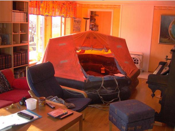 The rafts was quite modern - it's from 1972! - electrical lights in- and outside sea.anchor and ballast pockets below, entry ladder, rainwater collector etc.