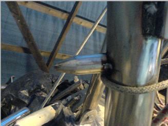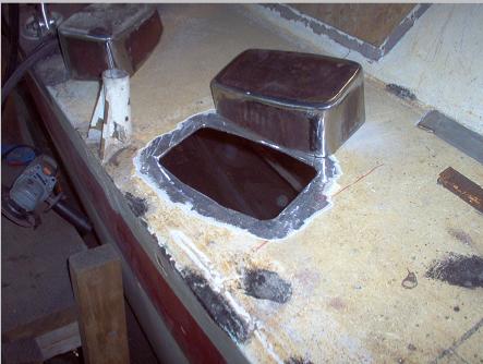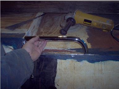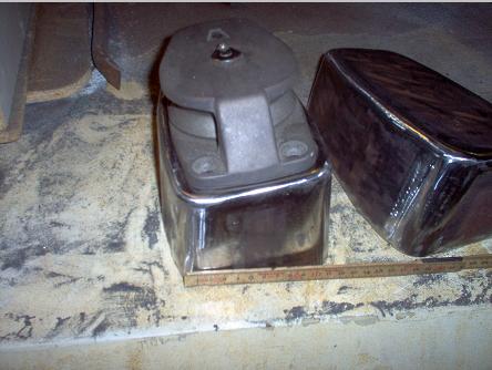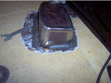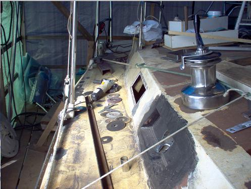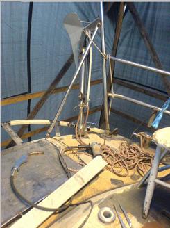 I removed this beautiful (actually) but i big rosttrap to place a more modern variant. On this part of the Bimini will be mounted.