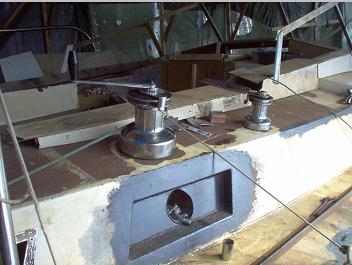 Aft had got the hatch in place. Also welded two smaller bollards for the dingy. Also the radar arch will lay on these when folded backwards. Rarely I hope.