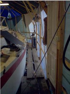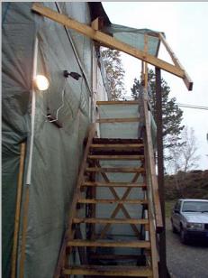 I'm quite anxious of hights - no problem with the altitude - just very scared to fall and hurt me... So a safe floor was buildt around the boat. There will also be a roof above the staircase.