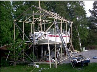 So to be able to work anytime despite of rain and snow I needed to build at boathouse. Mine is temporary - I plan to build a garage here when the boat is at sea.