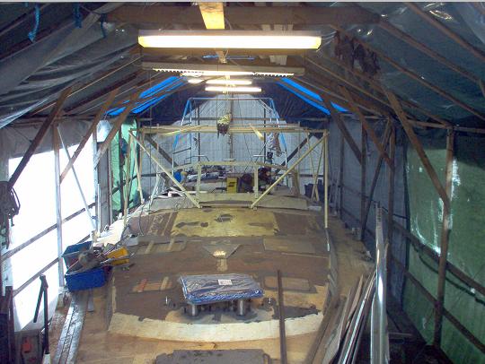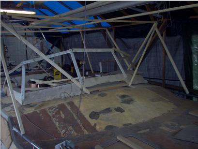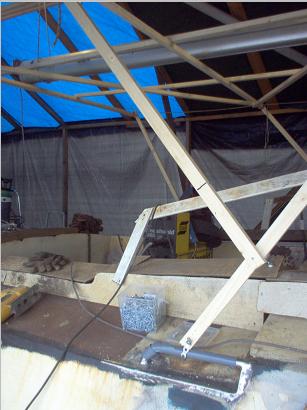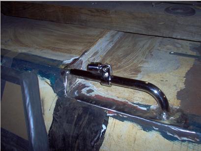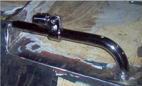 Biminiprotptype...lots of rods and fittings. Below right all bows is folded at front of windsheild just clear of the hatch-hood. The cloth (?) is probably stabilizing on the diagonaldirection but...anyway the fitting onto the deck and all tubes will be of the kind below - nice and shiny!
