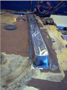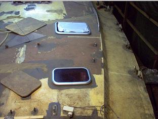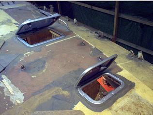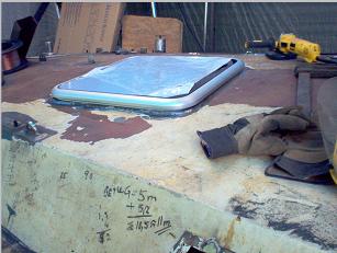 Main track ready. Below is the aft deckhatches fixed. The original corners where at wrong radius for Lewmar hatches so I just replaced the corners.
