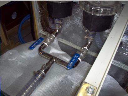 Main fuel filter inplace. All ball valves to seawater inlets almost there. Finalised the seawater inlet tubeings.