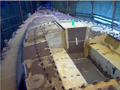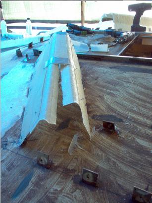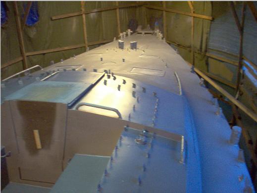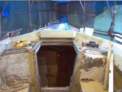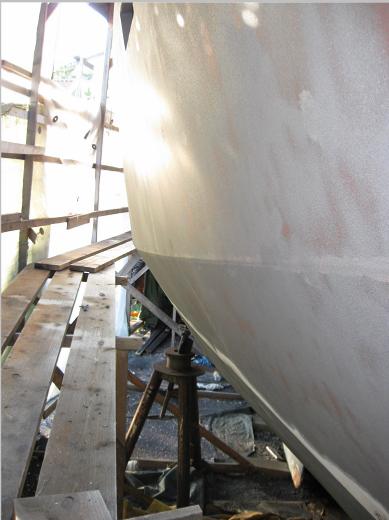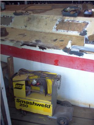 Last picture of the hull before sandblasting. All holes is covered and my green coffy cup is to be removed...yeah!