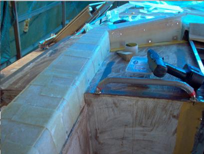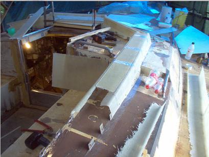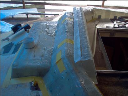 Starting with small simple pices attached with screws and then joining them with the plastic messy stuff mixed with glasfiber rug...