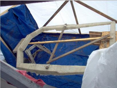 Left we look down into the extention of the boat house covering the cockpitframe. It will get thicker and smoother soon while temperature is warm enough. Painted and then mounted before winter - i hope.