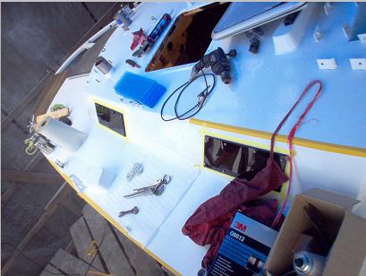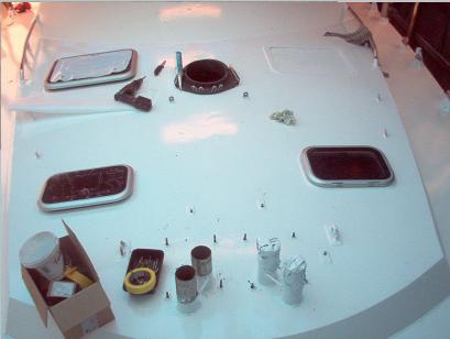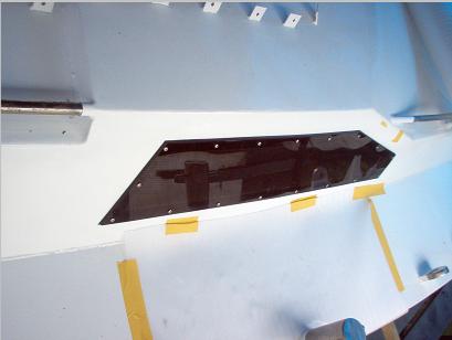 The dark windows is mounted with Betyl and Sikaflex UV stuff. A blue-isch pile of hull windows is seen on the upper left picture - to be drilled and mounted shortly.