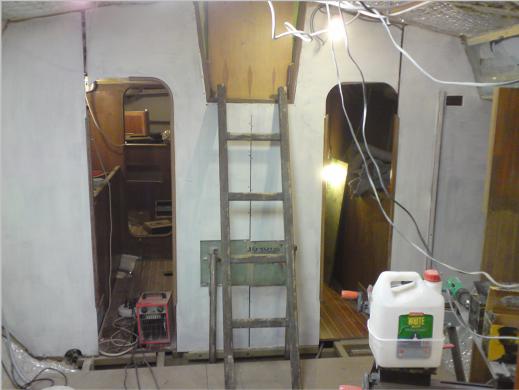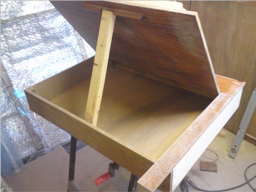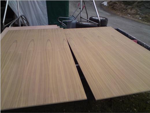 Below left is the second pile of plywood. Now with teak sheets for the salong etc.