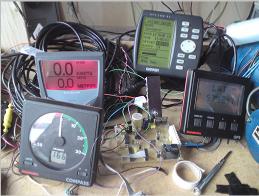 Right is the present pile of Autopilot stuff. All is now sitting on a old office chair so I can swing around the whole and simulating a moving boat.