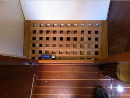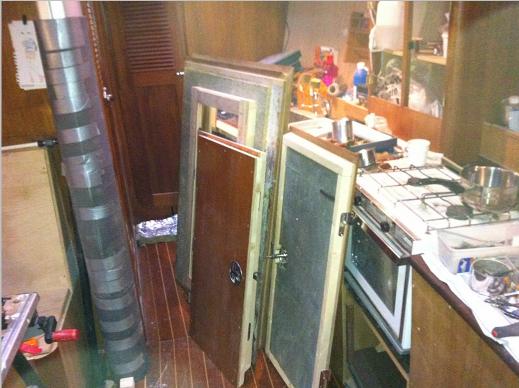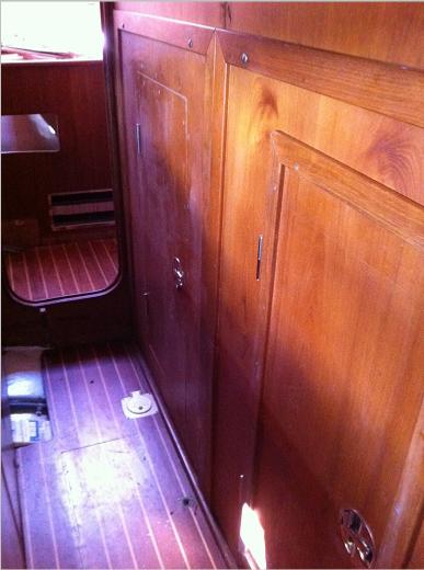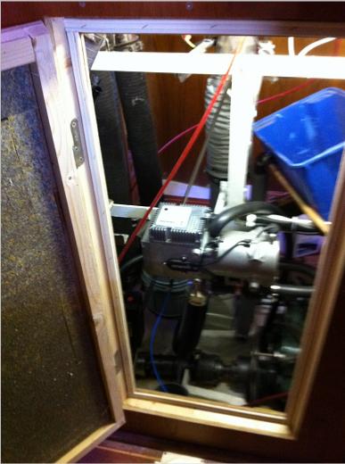 In the rear is one of the four large engine room panels. They where screwed on witch made it hard & slow to access the engine room. So I made four smaller doors in each panel. So I now have quick access and it's easy to shut off water intakes etc.
