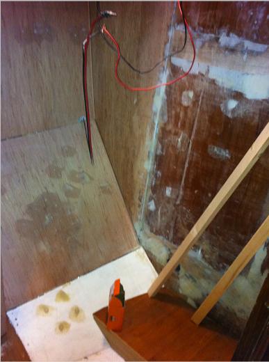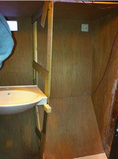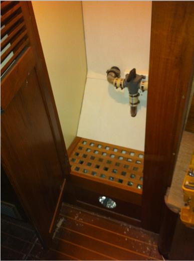 Right is the finished flooring inside the dryer. The blue handle is to the heating konvektor so I can easely turn on off the heat. The grey valve is for dumping to sea or deck or off.