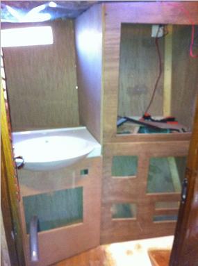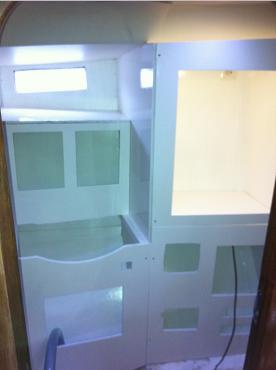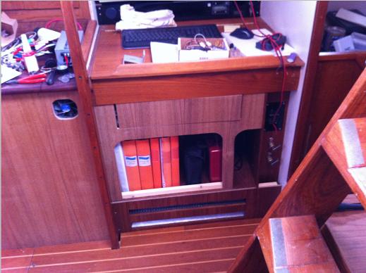A drawer was made under the chart table as I need to put away lots of stuff all the time. Documetation gots its place and next to it will be a fire distinguisher.