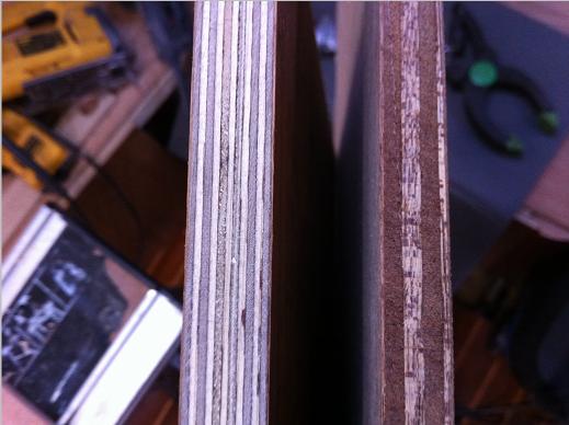 But look at the two different plywood sheets to the left. Both 1/2 inch 13mm. Advice: Try to get the type with more layers. Much stronger and easier to work with. No filler needed...