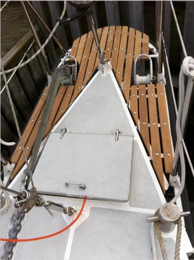 Outdoors got the peek finally its teak planks, 25 mm thick and lots of bolts. Here two small pieces still is missing.
