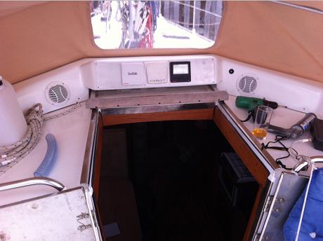 Below is a glimt of the temporary sprayhood - here only one window. Instruments and SPEAKERS is working!