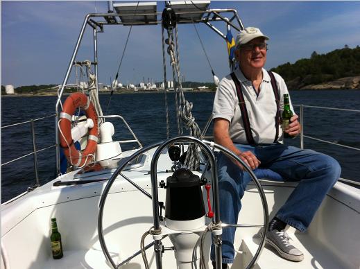 My hero and father at the rudder enjoying a beer motoring from the habour.