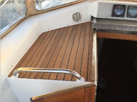 The area under the sprayhood got some teak glued on. This look very nice and coffey cups dont slip around so much on wood.
