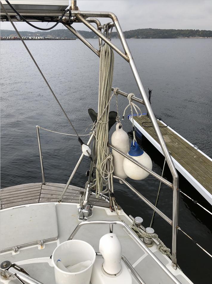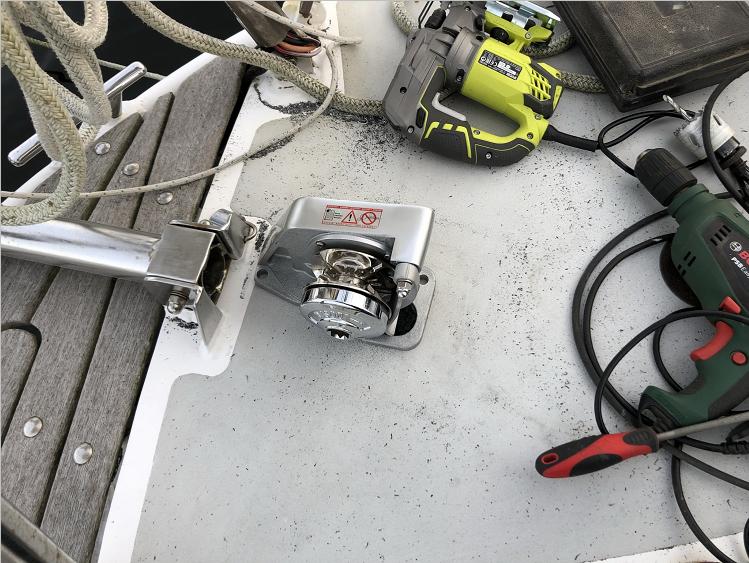 Fulfilling the plan from 2005 (!?) a electric windlass is finally inplace. :-) Fits tight with the "arm" for the anchor. The arm lets the anchor reach outside of the swim platform and the are is foldeble so it's more out of the way.