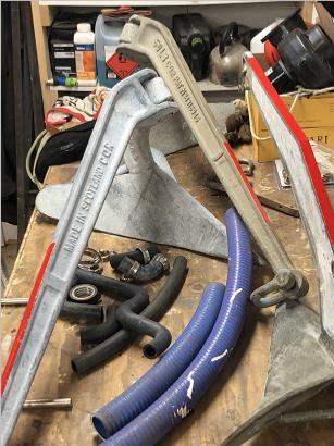 A new sturdy fender board was constructed. All the anchors and chains got peculiar colorings.